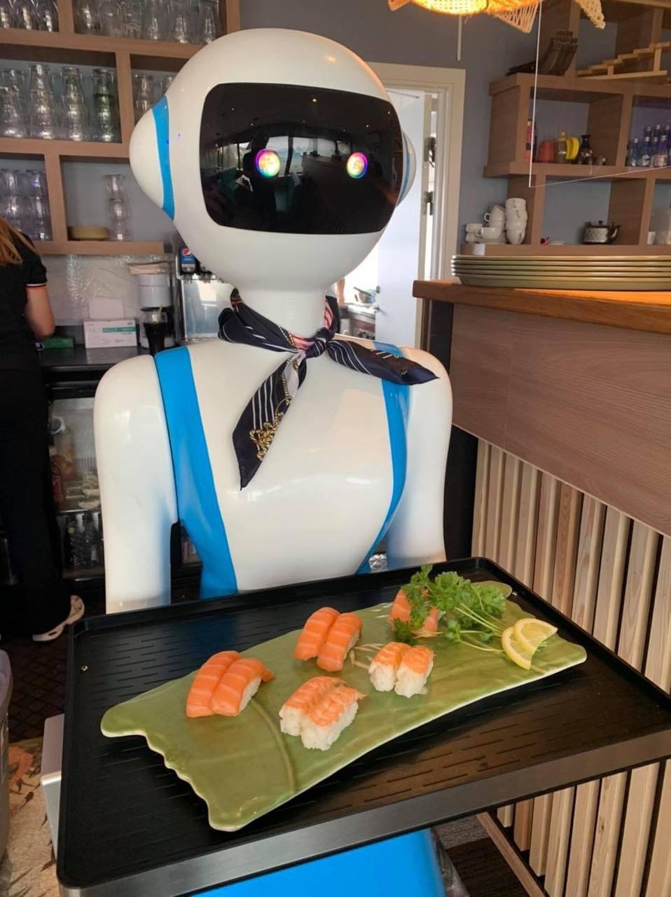 Our robot Sussie is looking forward to rolling down to your table and serving your freshly prepared sushi. After our major renovation in May 2020, we decided to purchase Sussie, who now helps our lovely attendants with serving. She has been very well received by you, and therefore, her success continues.